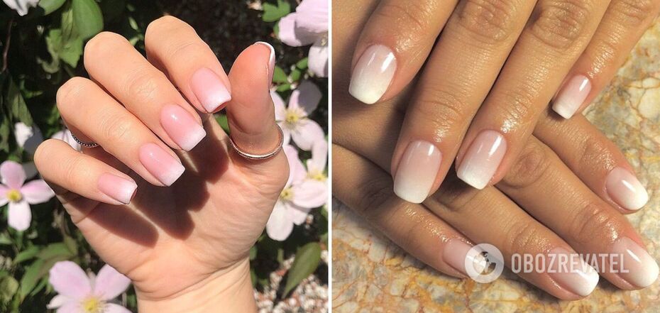 The main feature and difference of French Fade is the absence of a clear white stripe on the edge of the nail. Instead, there is a smooth transition between the white tip and the nude base. OBOZREVATEL will tell you more about the trendy design.