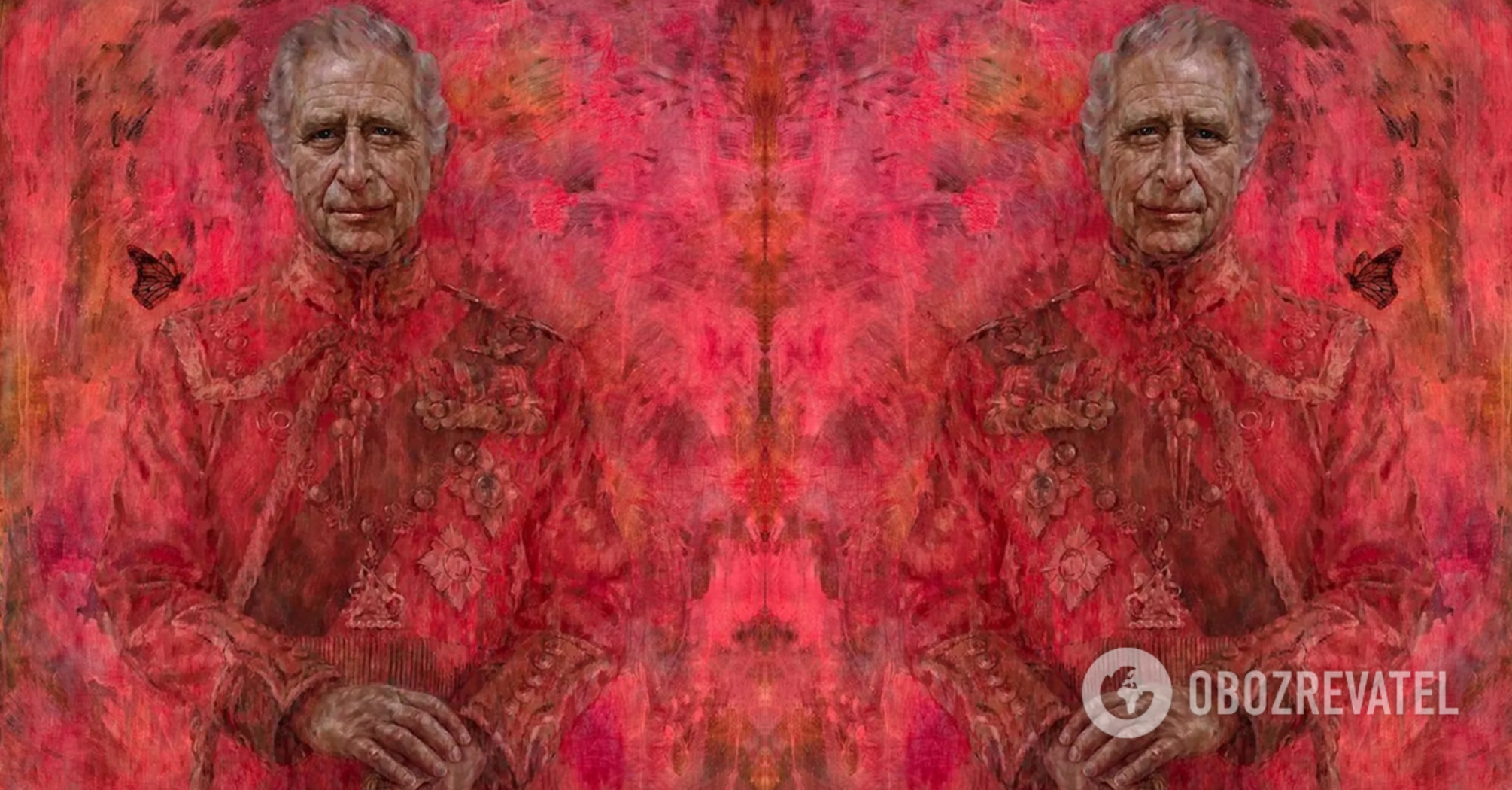 The portrait, decorated with a red hue, depicts King Charles holding a sword pointing downward, accompanied by a butterfly resting on his right shoulder. Users compared the dominant red tones to images of the underworld. They also drew attention to the monarch's disturbing appearance.