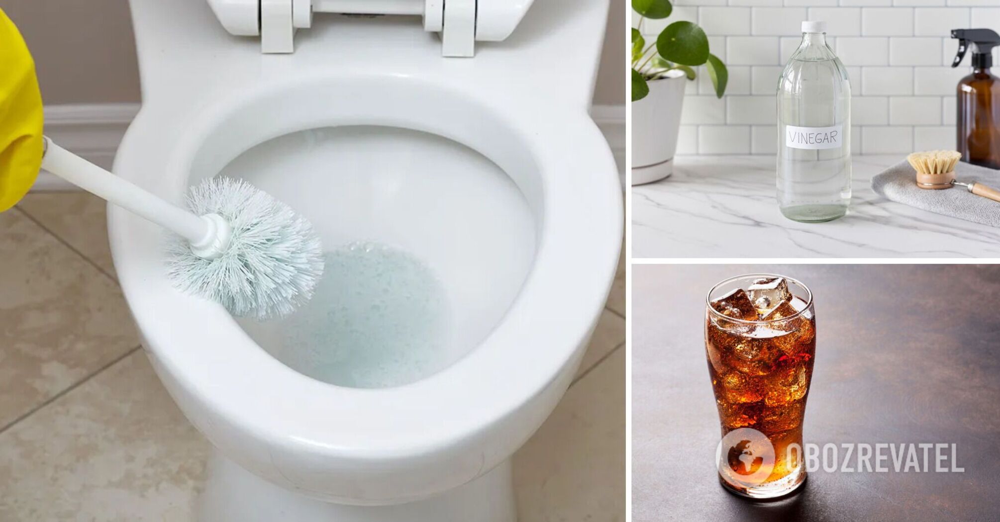 The popular carbonated drink also contains a lot of acids, including phosphoric and citric, so housewives have long used it as a cleaning agent. You don't need to prepare a special cola liquid, just buy a 2-litre bottle and pour it into the toilet bowl so that the drink completely covers the entire surface. After 2-3 hours, clean the bowl from the inside and rinse as usual.
