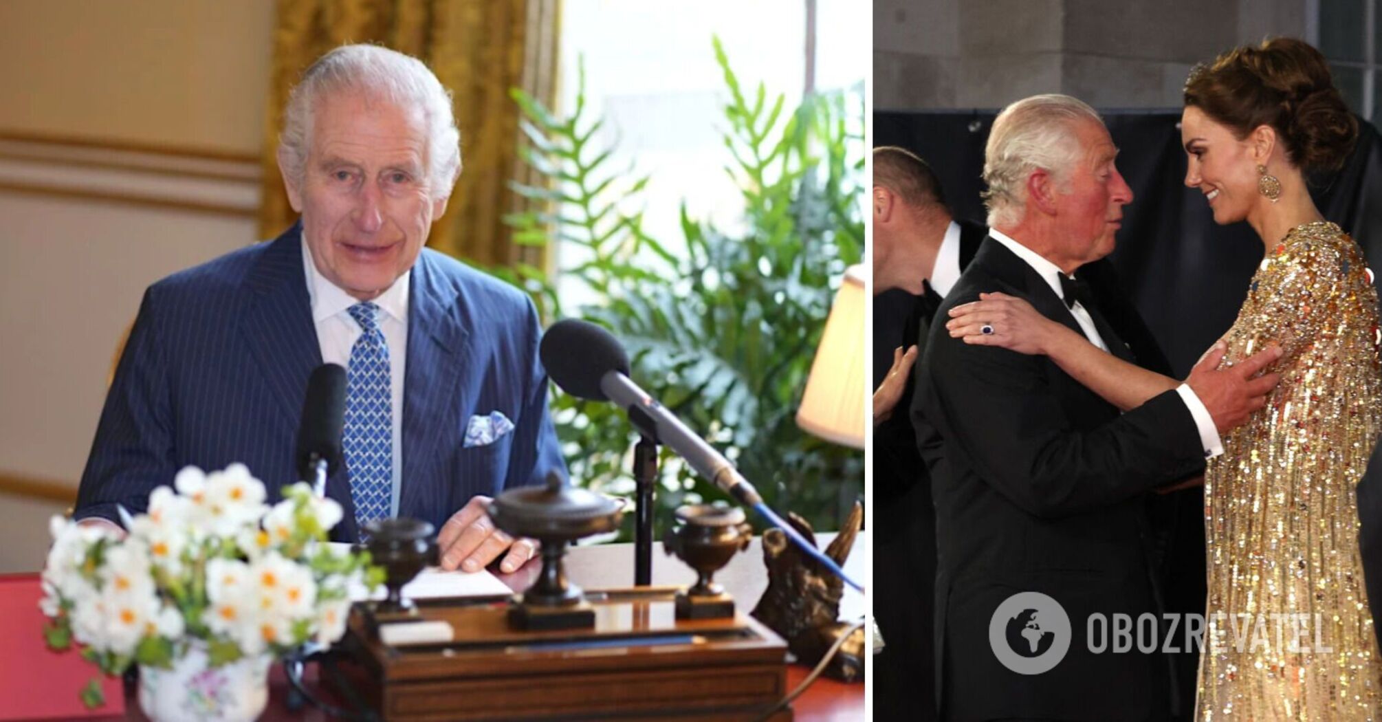 Charles III recorded his audio address in mid-March. In particular, a photo of the monarch sitting at a table in one of the rooms of Buckingham Palace was posted online. There was a vase of flowers next to the two microphones, and the king himself looked happy.