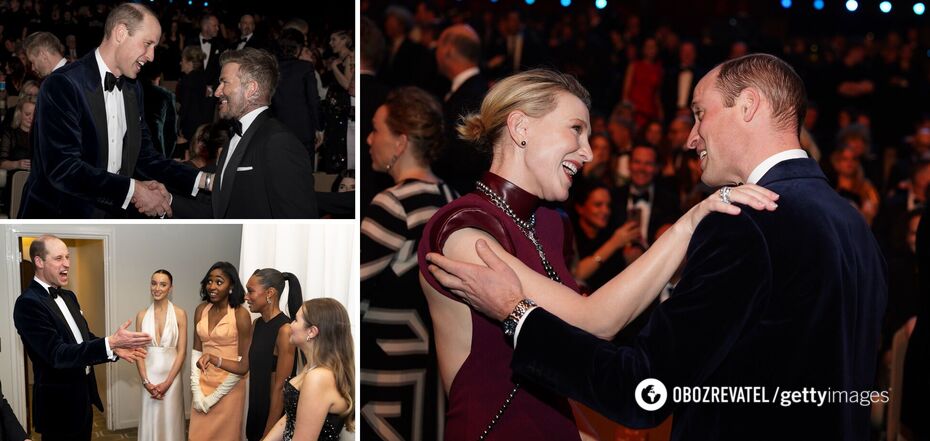 As you know, the Princess of Wales will not appear in public until Easter, so for now, William attends such events in proud solitude. However, it would be wrong to call the son of King Charles III lonely. At the ceremony, he was accompanied by world-famous stars, including actress Cate Blanchett and former footballer David Beckham. OBOZ.UA collected the relevant photos.