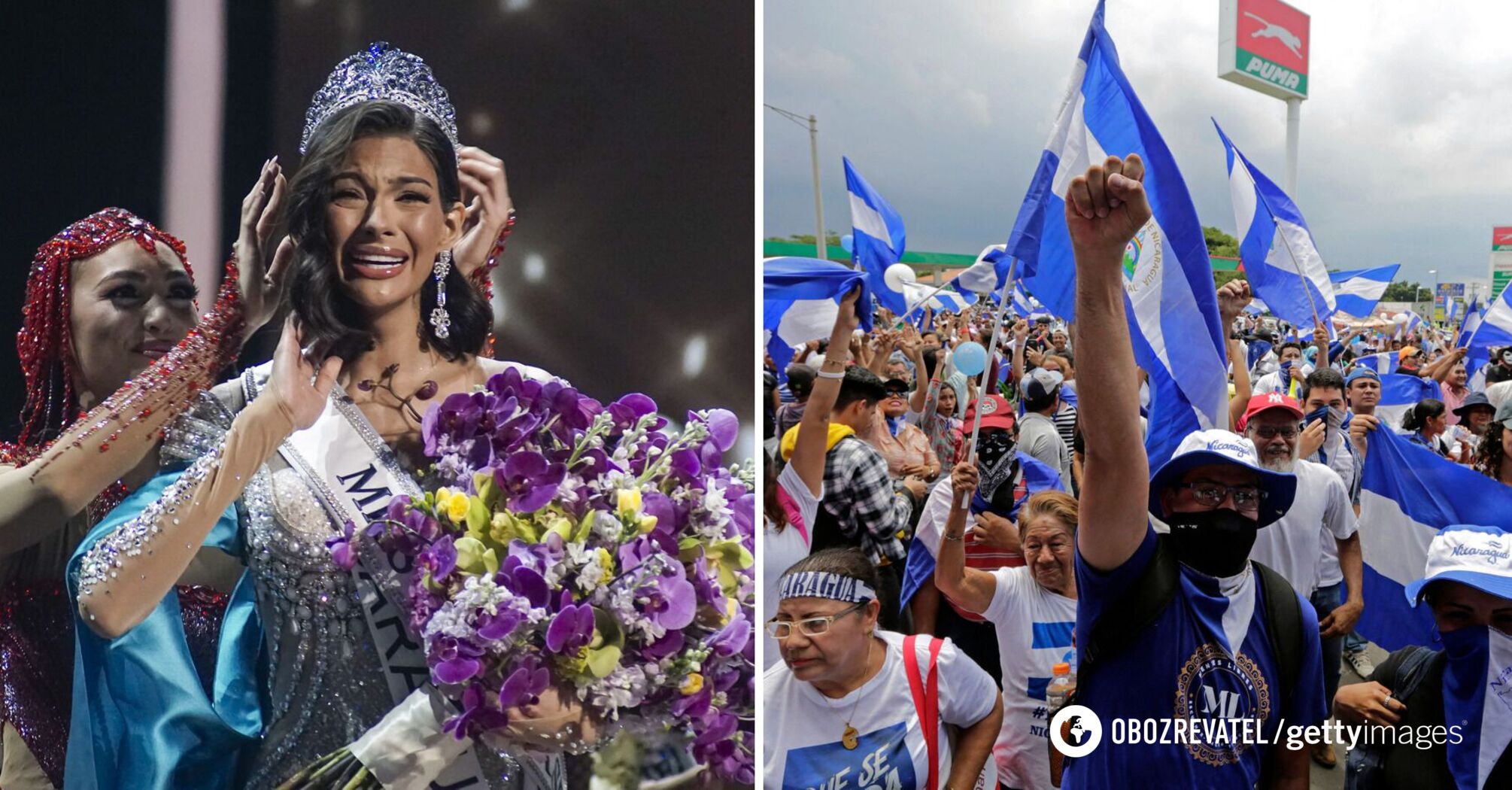 Some Nicaraguans took advantage of a fellow citizen's victory in a beauty pageant to celebrate in the streets with blue and white flags indicating the opposition movement. This did not sit well with the current government.