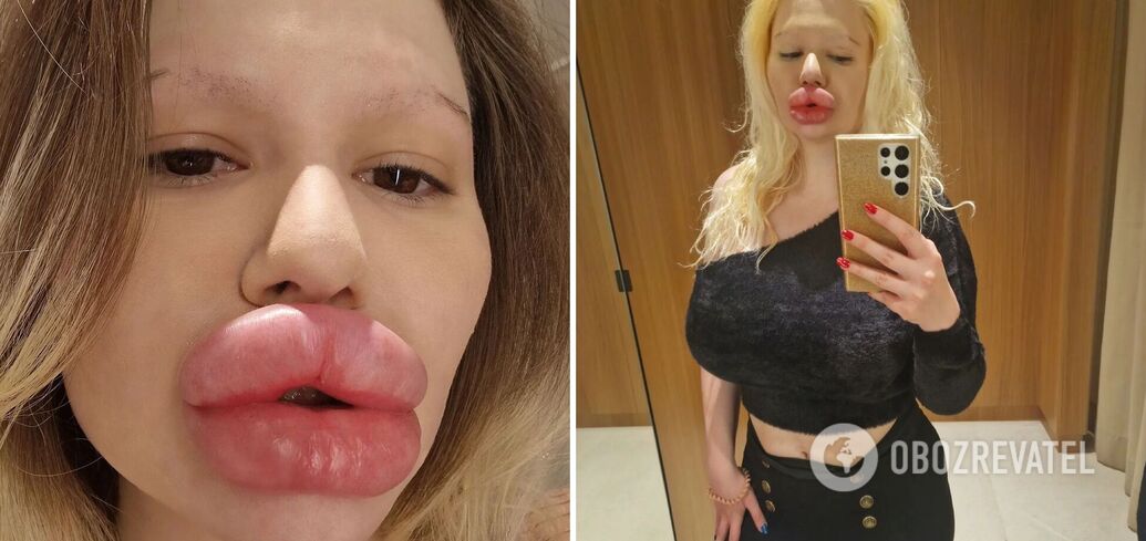 The woman with the world's biggest lips had 6 injections in one day despite the doctor's warning that her body would start to rot. Photo