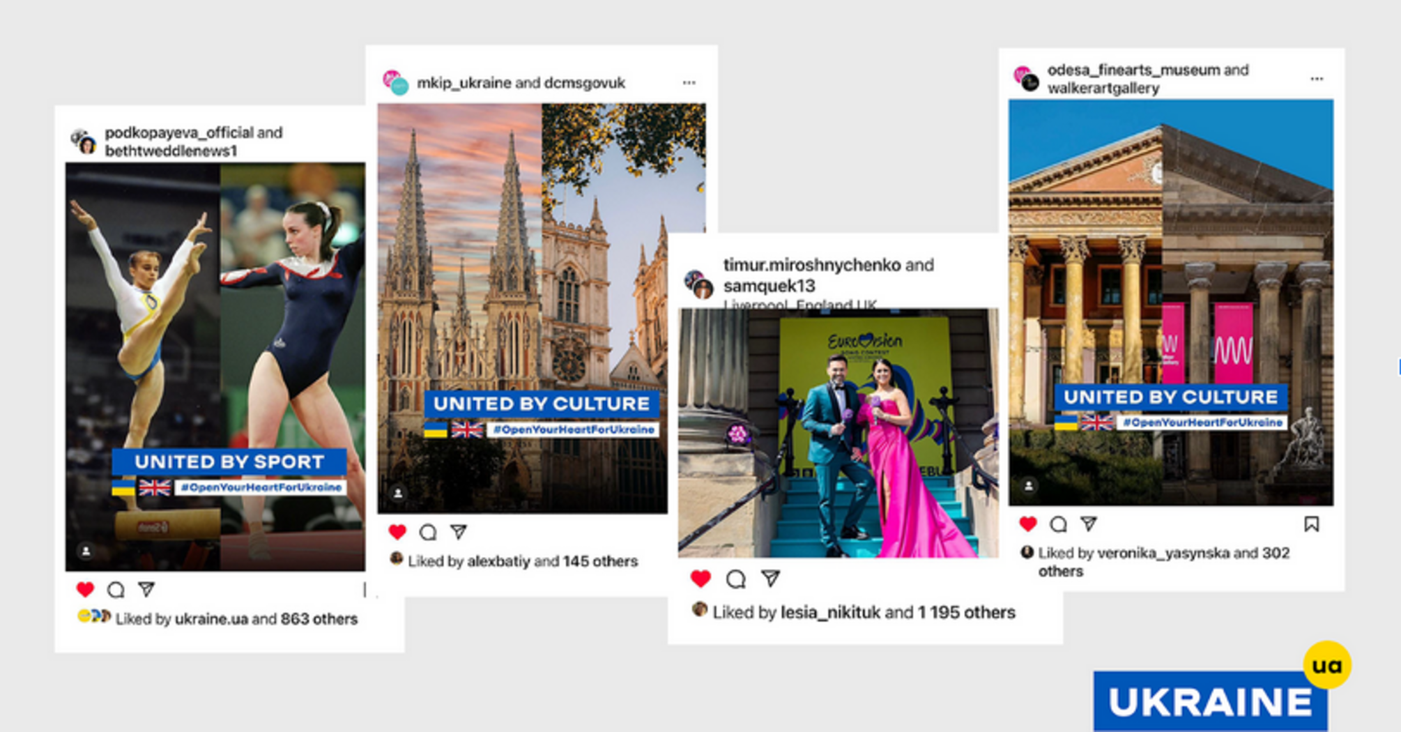 On Instagram, Ukrainian and British showbiz stars, athletes, politicians and even institutions and organisations are posting jointly about what unites the two countries and calling on people to open their hearts to Ukraine.
