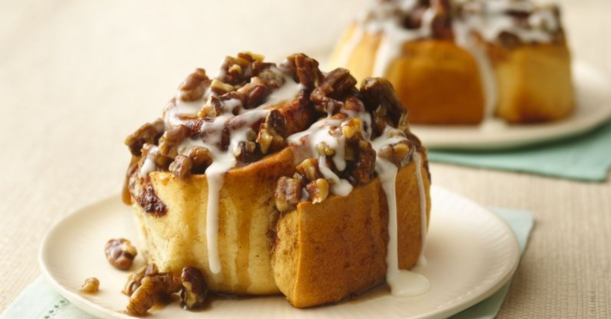 13. Make the cream: beat the cottage cheese with cream with a whisk, add powdered sugar and lemon juice. Lubricate the hot cinnabons with it.