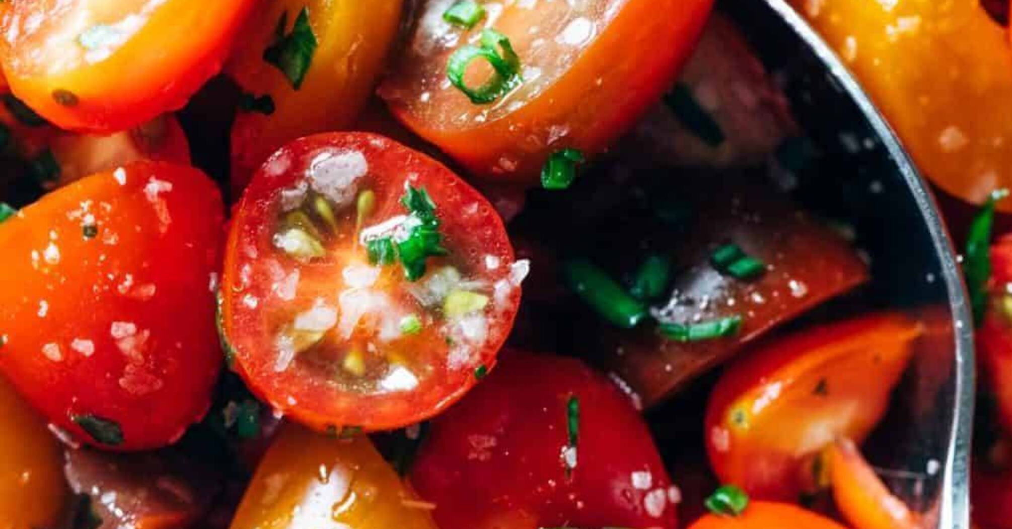 Instead of multi-ingredient salads, you can simply marinate tomatoes. This vegetable itself is very juicy and has a rich flavor, so you will need very few components to complete it. You can eat the appetizer the next day and store it in the refrigerator for some time.