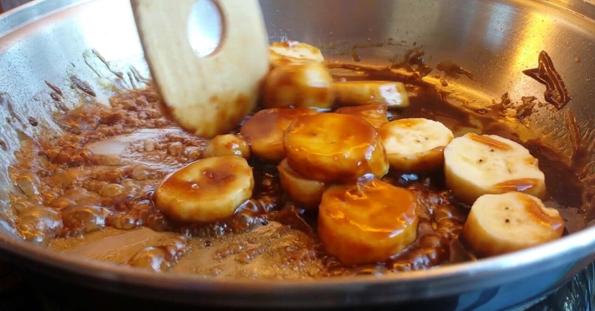 6. At the end, add bananas, cook for exactly one minute. Do not overheat.
