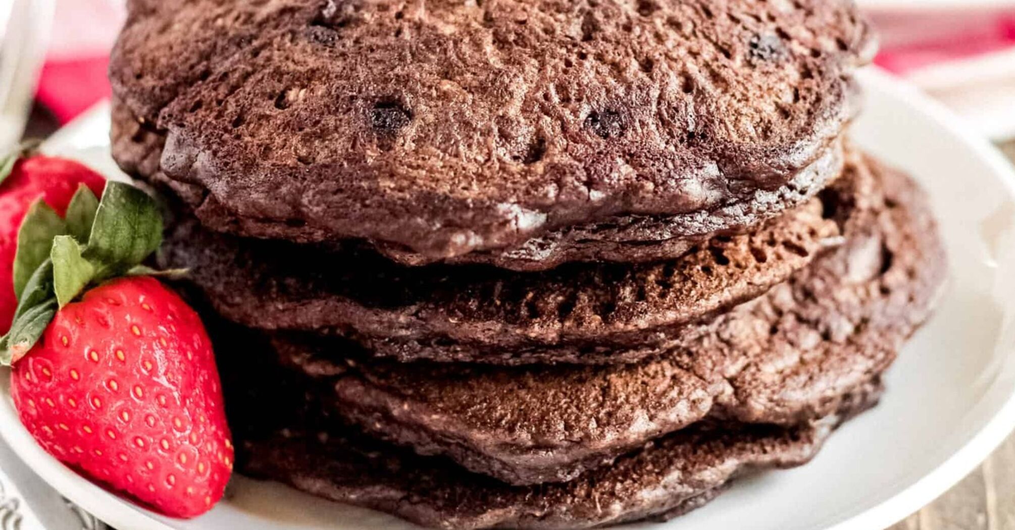 Healthy chocolate oatmeal pancake for breakfast: made without flour and sugar
