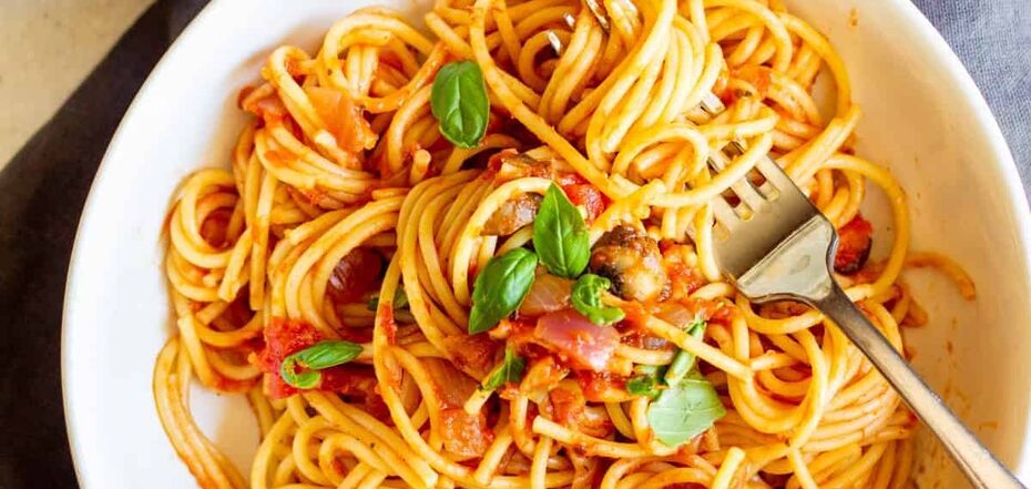 Real Ukrainian yellow tomato sauce pasta from a chef