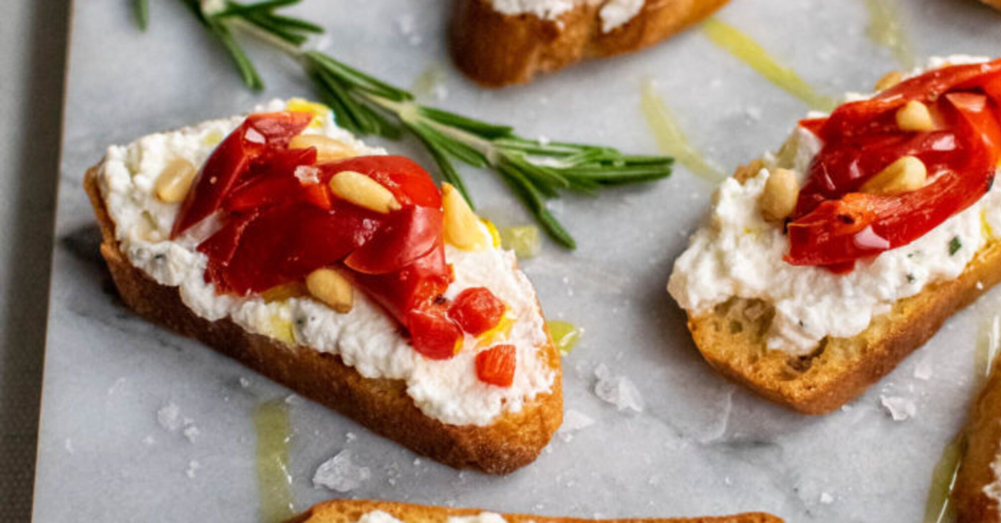 Seasonal bruschetta with cream cheese and bell peppers that is ready in just a few minutes