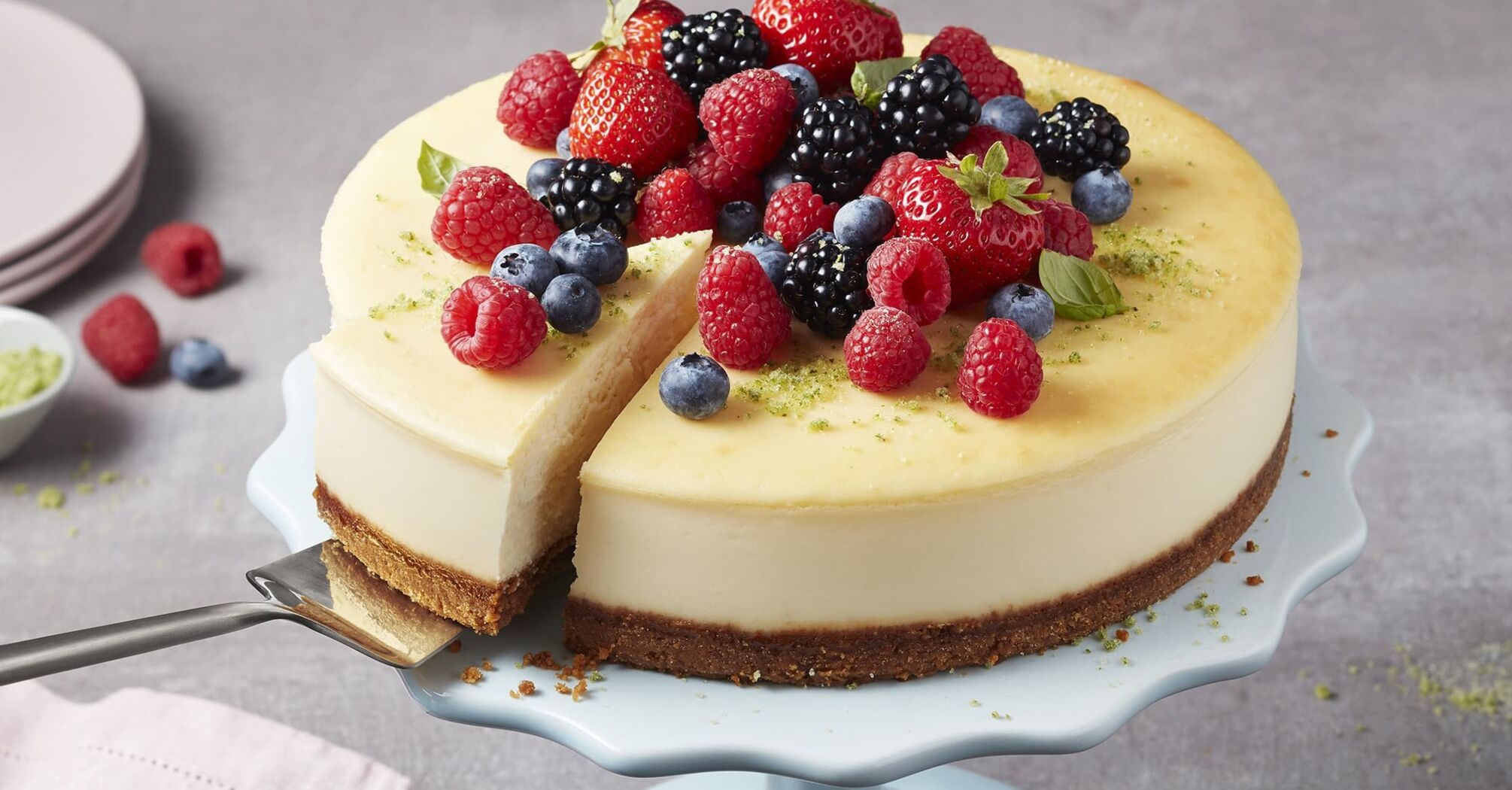 Spectacular vanilla and blueberry cheesecake: prepared without baking