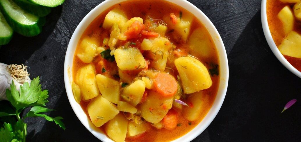 Stewed potatoes are a delicious and satisfying potato dish that is ideal for lunch. Traditionally, it is complemented with vegetables like carrots and onions, as well as meat, ribs, mushrooms, and even sausages.