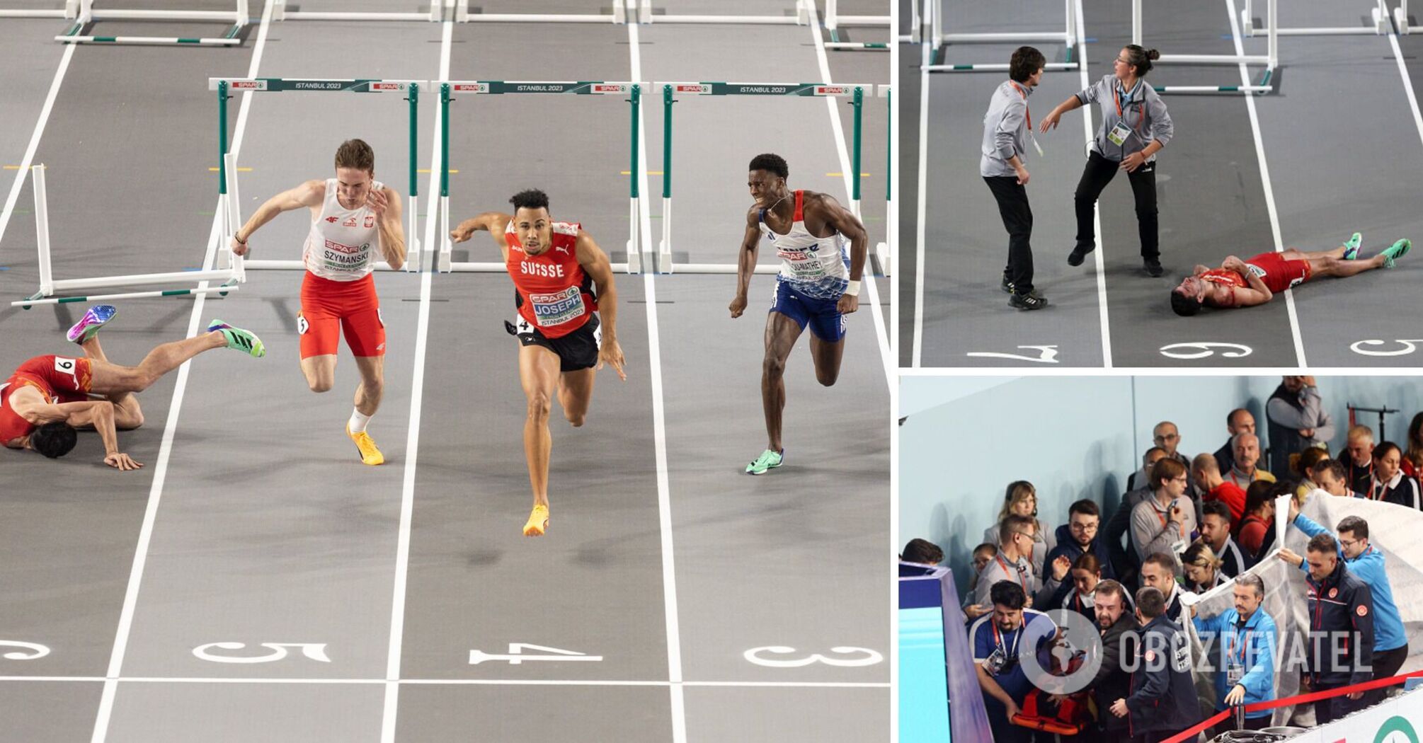 Spanish runner Enrique Llopis was seriously injured during a race in the final of the European Athletics Championships in Istanbul. The incident occurred at a distance of 60 metres with hurdles.