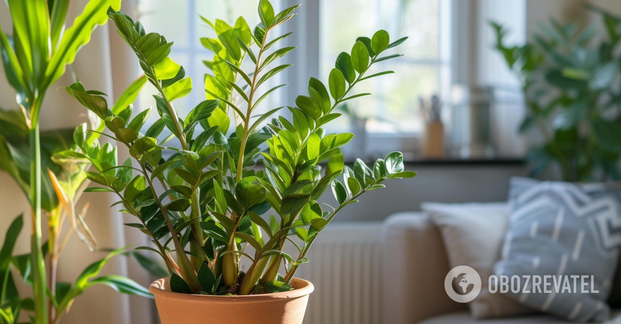 Recall that OBOZ.UA has included zamioculcas in the top 10 plants that will make any interior more comfortable without any extra effort.