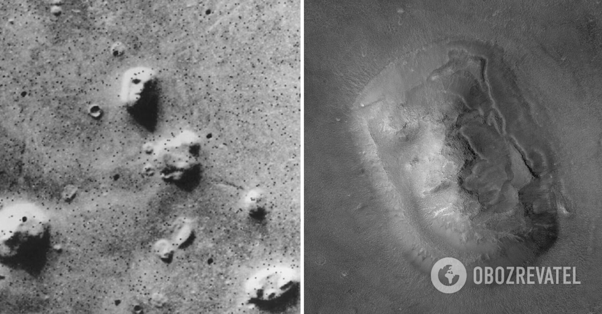 A 1976 photo, in which lighted and darkened areas form a figure similar to a human face half hidden in shadow, captured a Martian mountain. This made conspiracy theorists fantasize that it was actually a man-made sculpture left by representatives of an extraterrestrial civilization. According to various assumptions, it could have been a stone image or even the remains of a giant. But the reason was quite different.