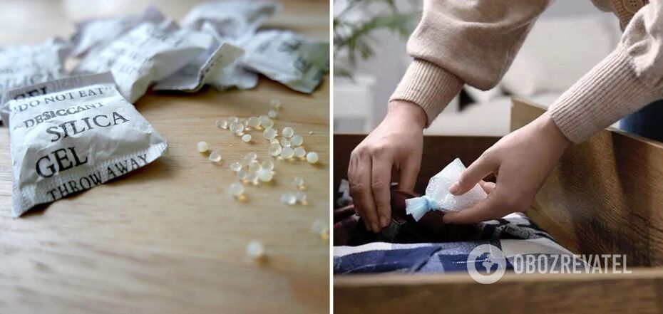 You've probably seen it - a small bag with a warning not to eat its contents. You can find them in boxes of appliances, shoes, or clothes. They contain beads of silica gel, a specially formed sodium silicate. This is an extremely hygroscopic substance that keeps things from getting too wet during transportation. As a rule, these bags are thrown away immediately after opening the box.