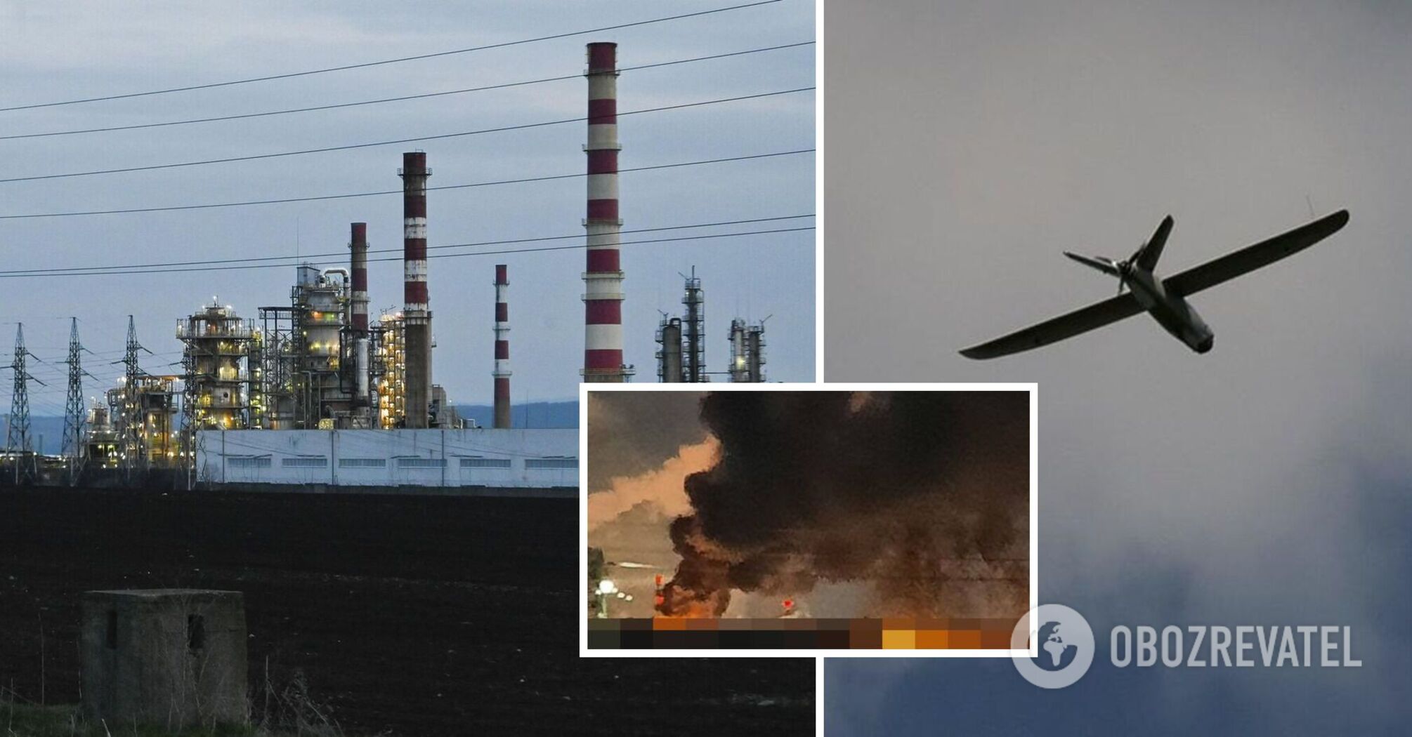 Russian Telegram channels clarified that one drone fell on the territory of the refinery around 05:30 local time. After that, a fire broke out: a column of fire and black smoke rose above the plant, which was visible from a long distance.