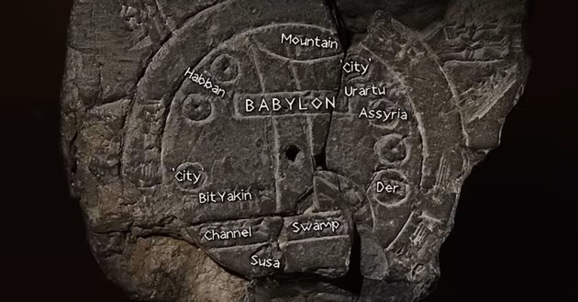 Mesopotamia is located at the bottom center of the map, but according to British scientists, the two circles surrounding the city are particularly unique. "The double ring is very important because it has a cuneiform inscription that says 'bitter river'. It was believed that this water surrounded the known world," said Dr. Irving Finkel, an expert at the British Museum.