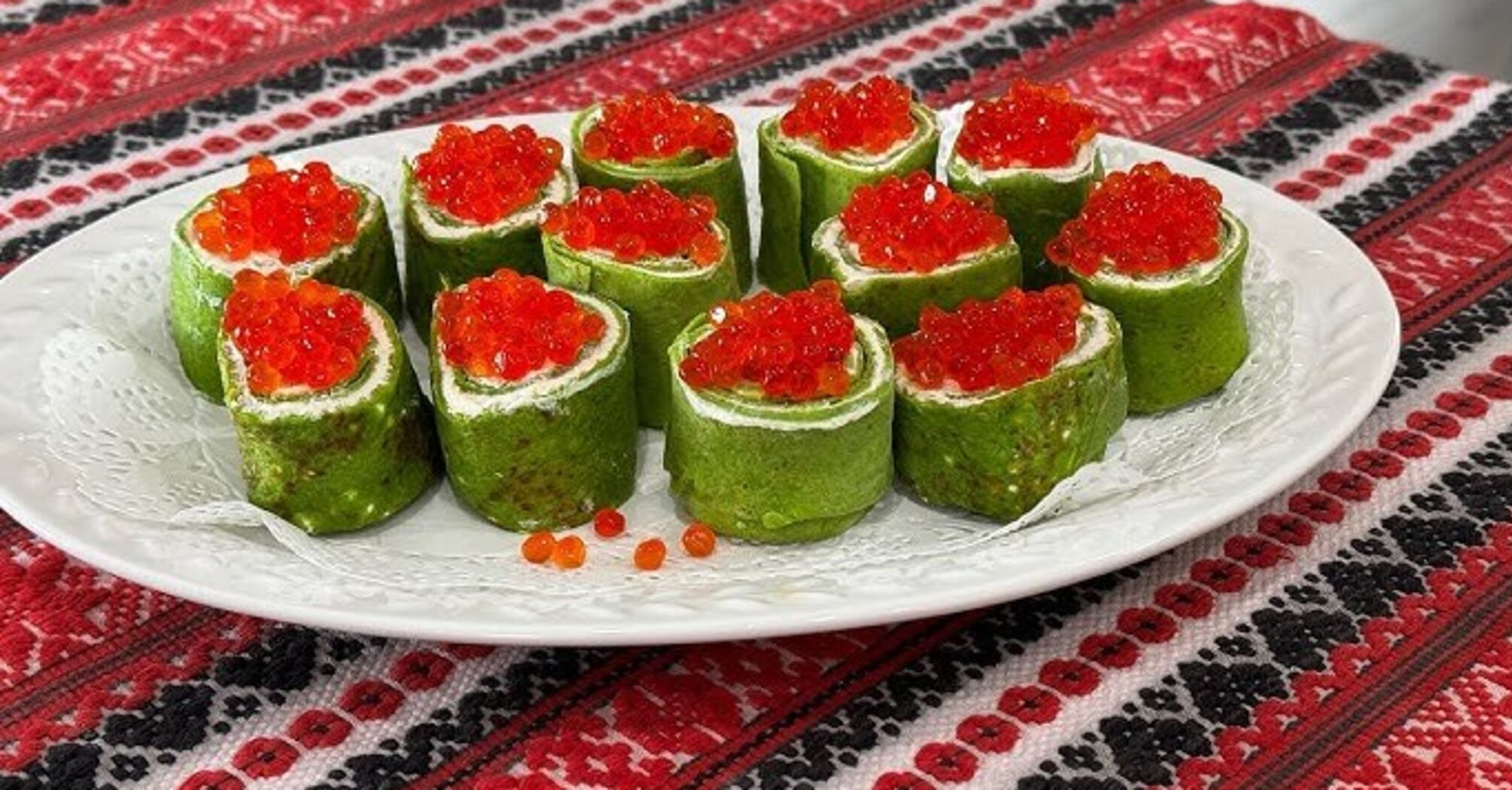 Festive green pancakes with red caviar: be sure to prepare an appetizer for the New Year 2025