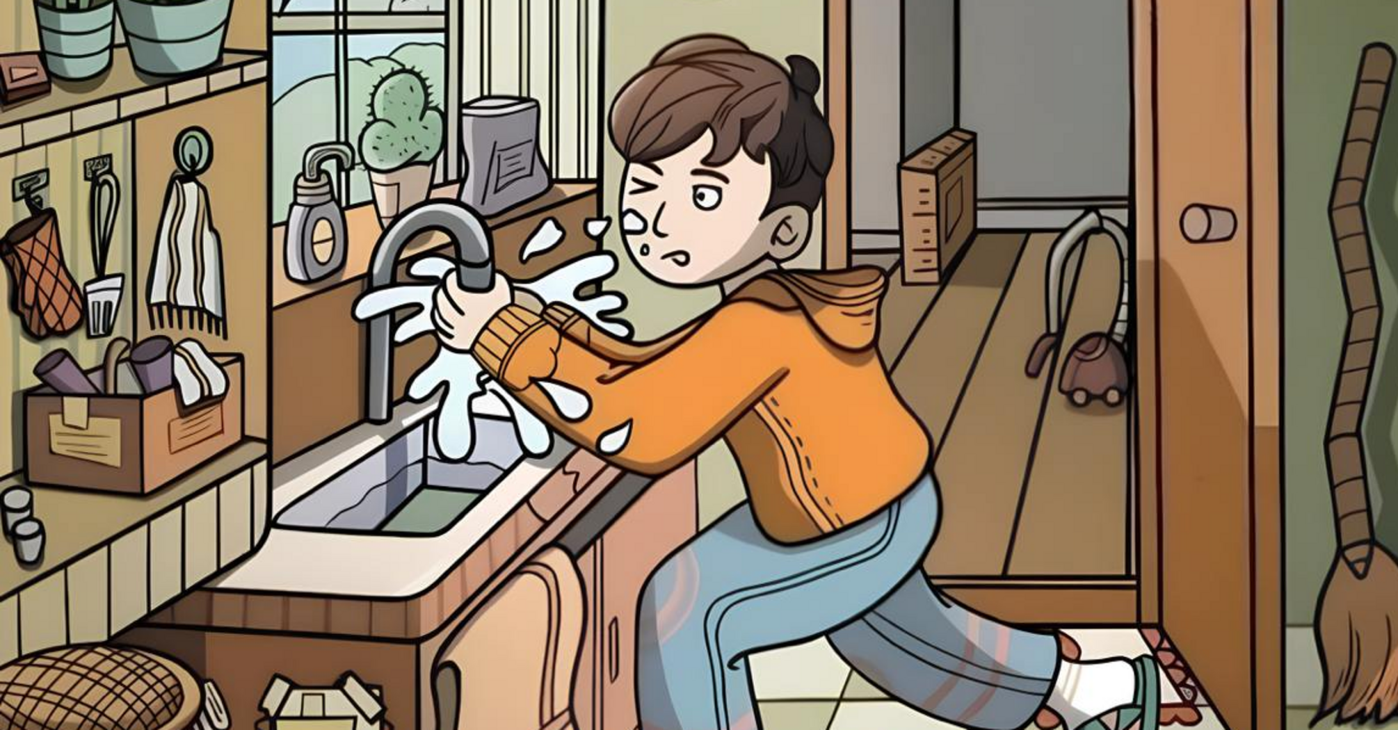 Do you want to try yourself at it? OBOZ.UA is publishing such a puzzle. Here is an ordinary household scene - a man is trying to repair a leaking tap. Around him you can see many objects, but can you find a comb among them?