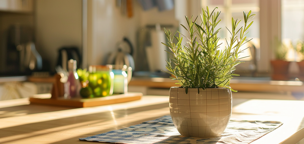 Rosemary loves a lot of light but grows best in conditions where it receives diffused rays. In the open sun, it can suffer from leaf burns. The plant does not need a special temperature regime – the usual range of room temperatures will be enough.