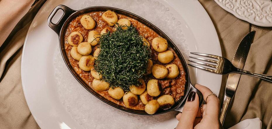 Italian dumplings with mushroom sauce: a traditional dish in a new way