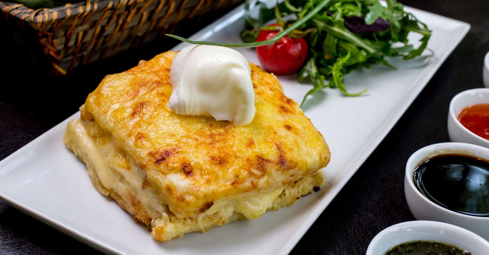 Achma is a traditional Georgian dish made with thin boiled dough and brine cheeses. In recent years, it has become so popular among Ukrainians that instead of the usual filling, they began to add cottage cheese to it and use pita bread instead of such dough.