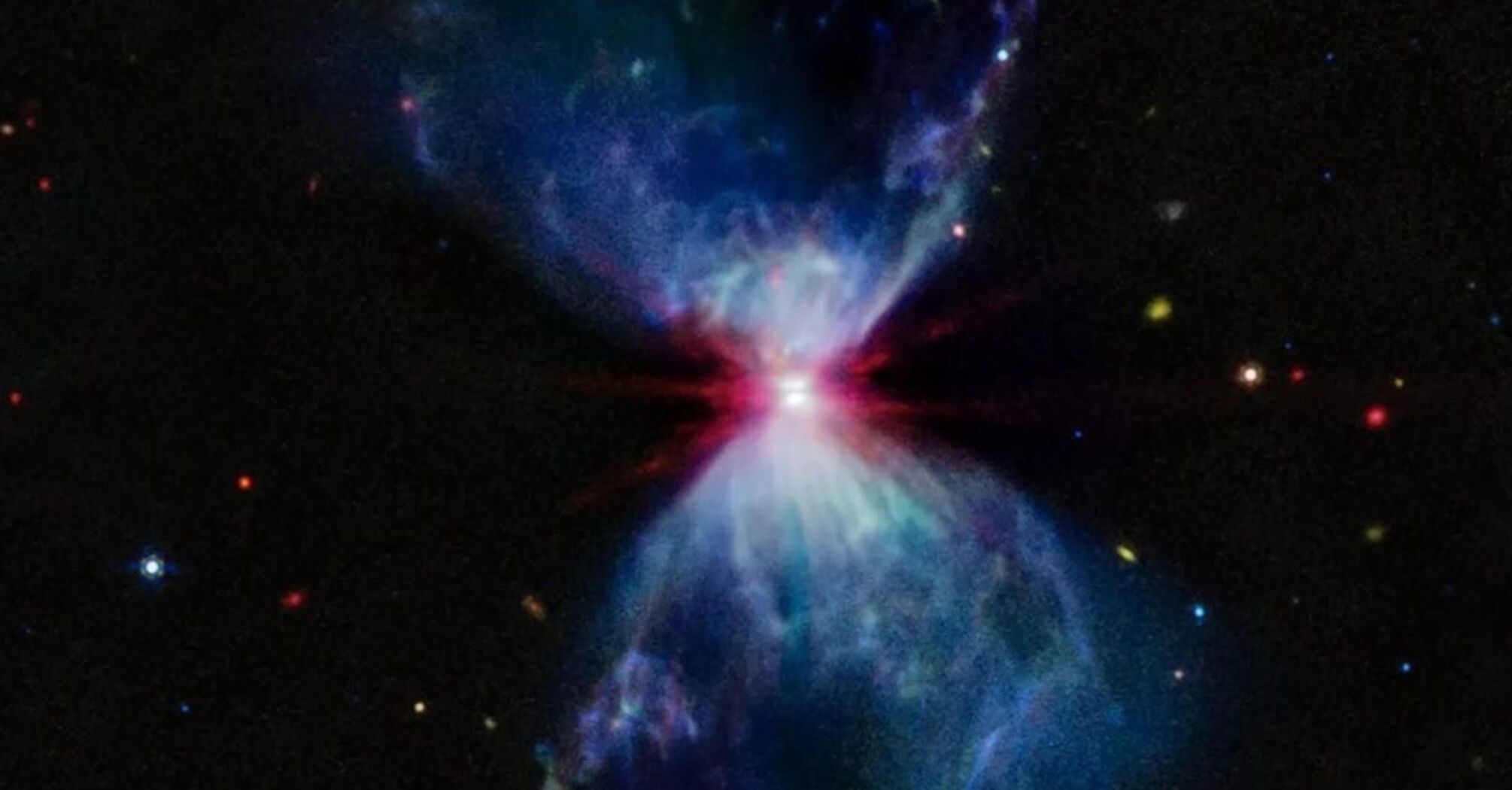 In a new image captured by NASA's high-powered James Webb Space Telescope, the cosmos appears to be alive with celestial fireworks. This fiery hourglass shows the scene around a newborn star.