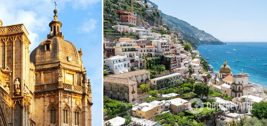 The resort is located on the Amalfi Coast. Its houses seem to be glued to the rock. They are built at different heights and resemble a mosaic from a distance.