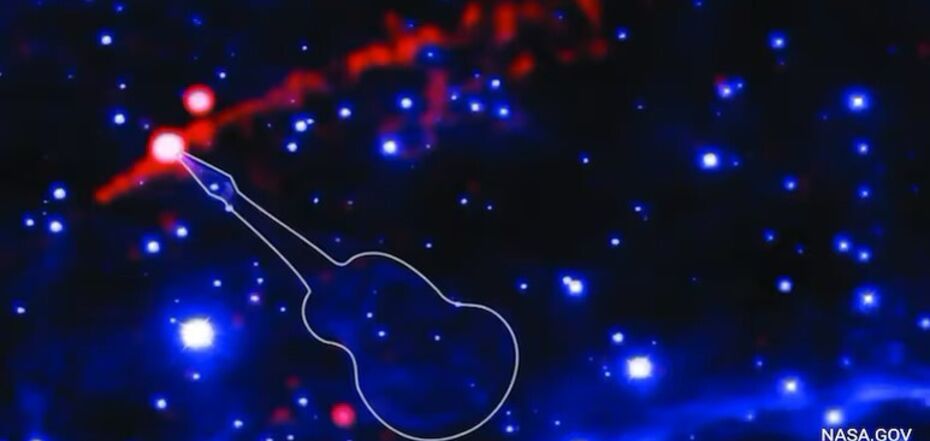 The luminous nebula, located about 2700 light-years from Earth, resembles a guitar with a bright pulsar. NASA telescopes have spotted a luminous nebula that crushes fast pulses of stellar material in space, like sound waves through a crowded concert stadium, Space.com compares.