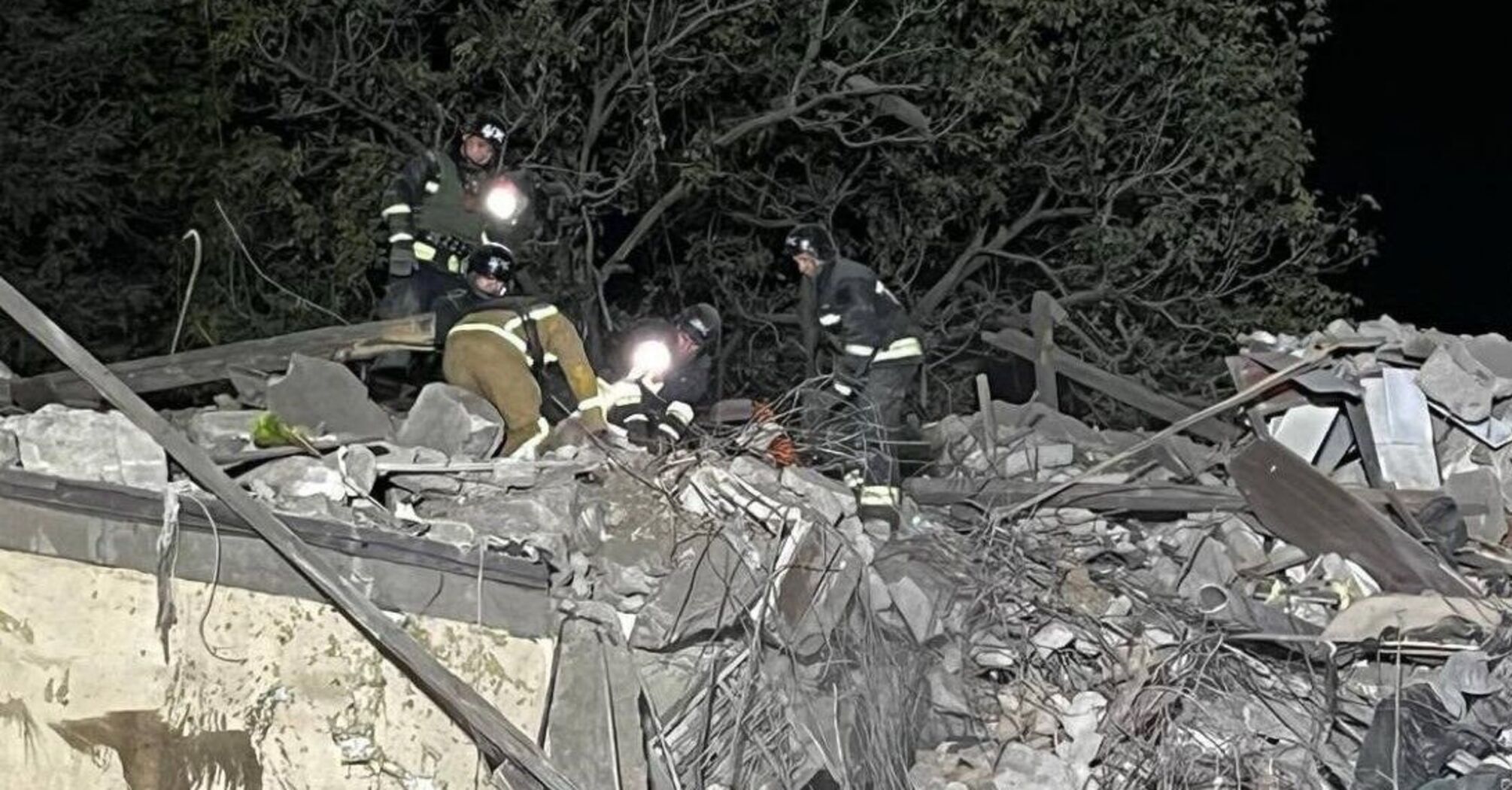 Rescuers pulled the bodies of three people from the rubble of the two-story building. Another woman was rescued from the destroyed building and handed over to doctors.