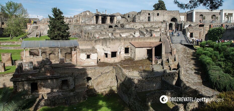 It is known that the Insula dei Casti Amanti was not far from the Pompeii amphitheater, famous for hosting gladiatorial battles before it was buried by the eruption of Mount Vesuvius. This site is now open to visitors who can walk over the remains thanks to a newly built system of suspended walkways.