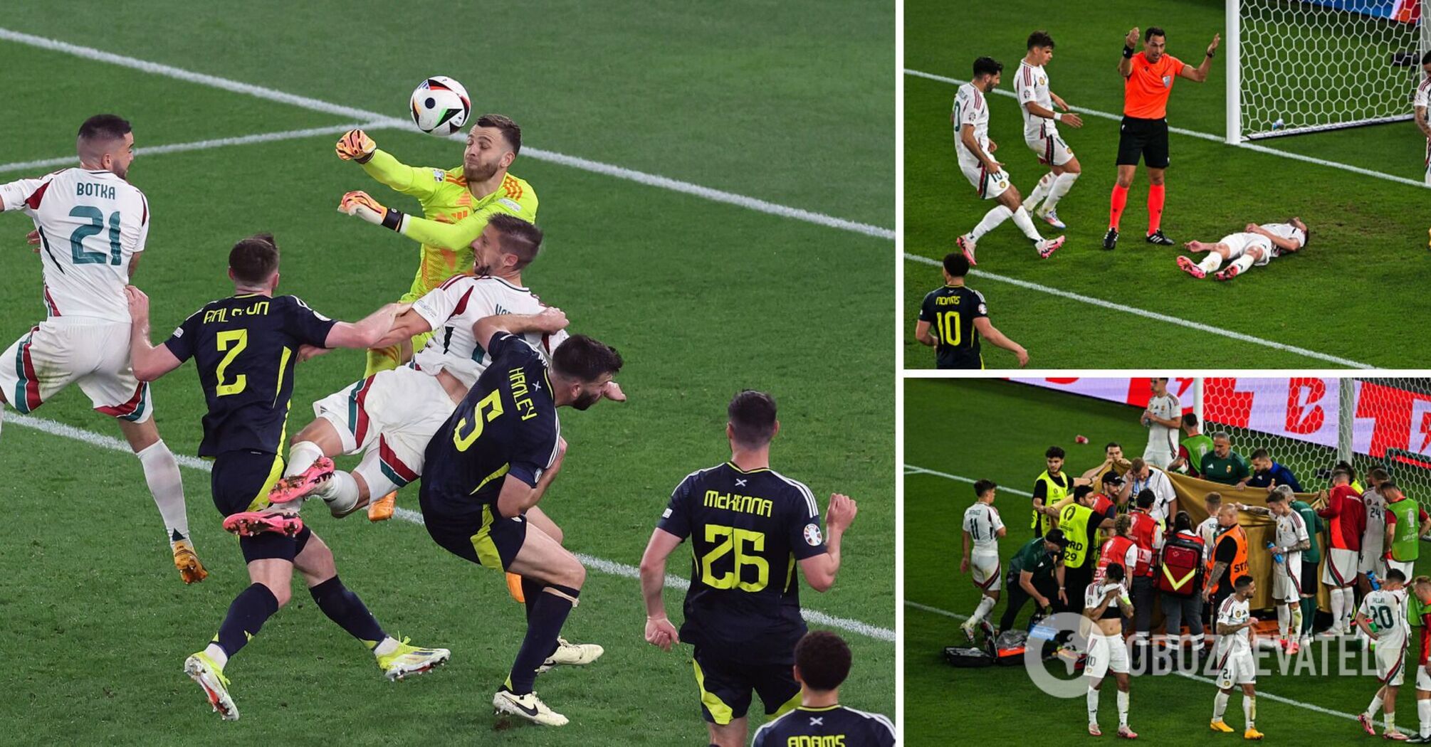 Hungarian national team forward Barnabas Varga was seriously injured in the 3rd round of the European Football Championship against Scotland. The 29-year-old leader of Ferencvaros collided with Scottish goalkeeper Angus Gunn in the 71st minute and was left lying motionless on the turf.