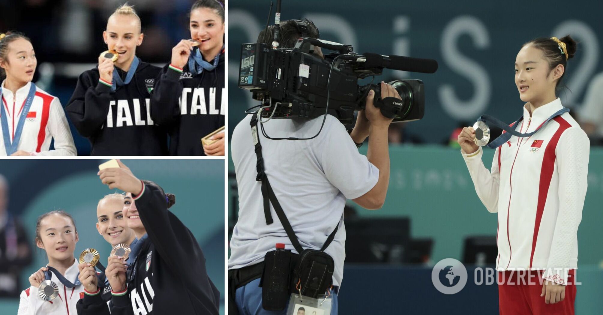 Zhou scored 14,100 points, losing to the winner Alice D'Amato from Italy by 266 thousand points. Another Italian, Manila Esposito, won the bronze medal. During the solemn photo shoot, the Europeans traditionally 'tasted' the medals.