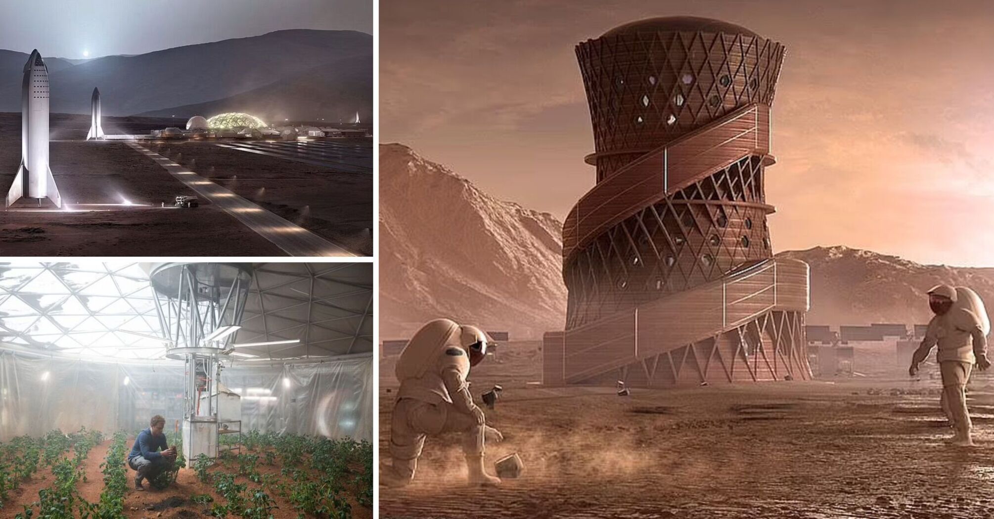 The images previously published by Musk show his company's Starship Super Heavy rocket standing on the surface of the Red Planet, with the dome of the base and something similar to solar panels in the background.