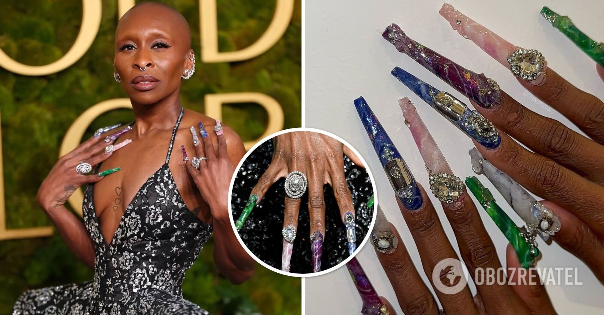 Cynthia Erivo's manicure became a real sensation on the Golden Globe red carpet. This extravagant design was created by a 19-year-old Los Angeles nail artist known on social media as Clawz by Dior. She is not afraid of bold decisions and encourages her clients to experiment with the length, shape, and color of their nails.