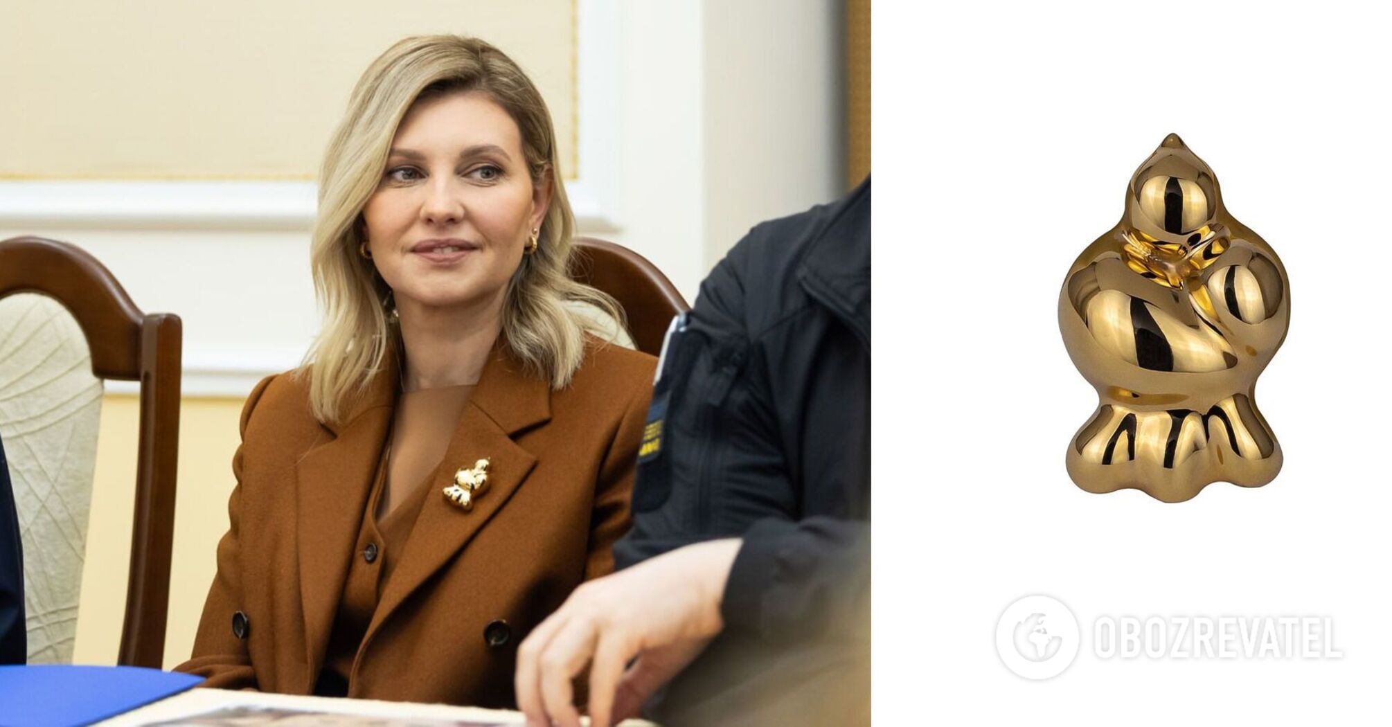 Zelenska appeared with a 8800 UAH Dove brooch from Gunia Project: what it symbolizes