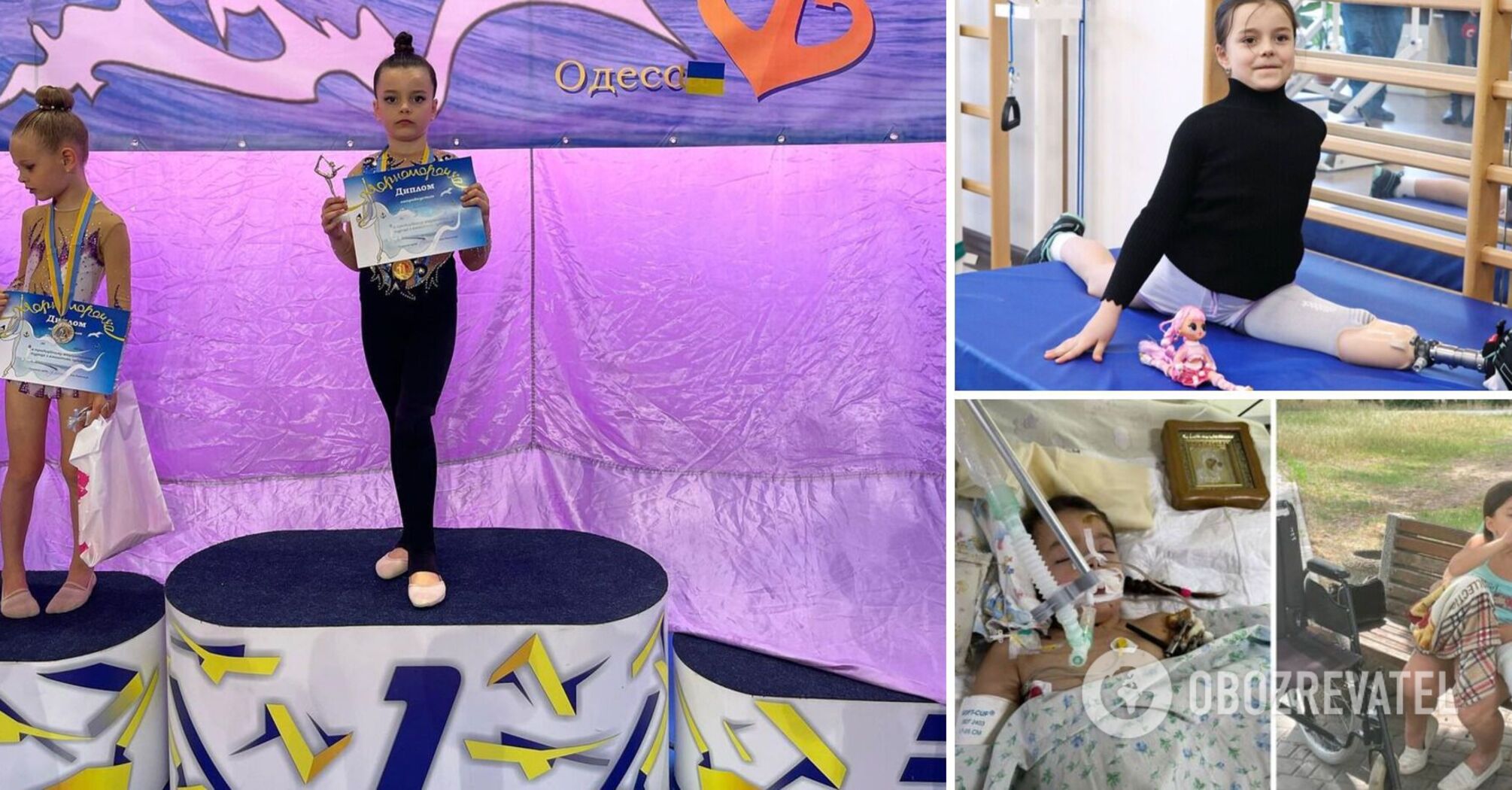 Young Ukrainian athlete Oleksandra Pascal won first place in her first rhythmic gymnastics competition. The 7-year-old native of Chornomorsk lost her leg last year.