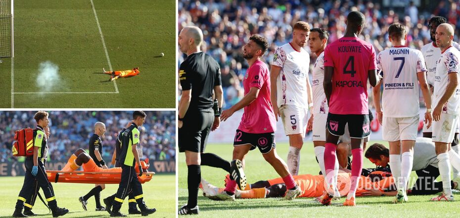 In the French championship, the goalkeeper lost consciousness from an explosion at the stadium during a match. The game was canceled. Video
