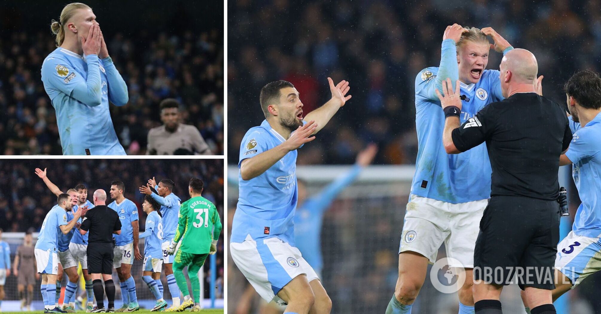 The match of the 14th round of the English Premier League between Manchester City and Tottenham ended in a refereeing scandal. The match's chief referee, Simon Hooper, made two controversial decisions at the end of the match, provoking a violent reaction from City players.