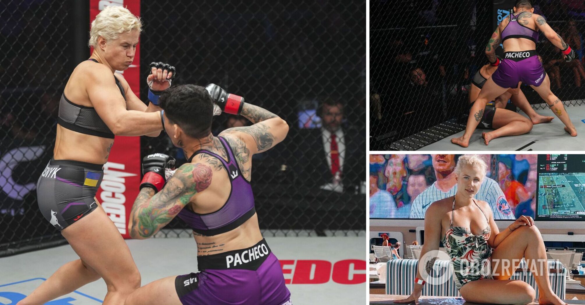 The match between Kolesnyk and Pacheco lasted 14 seconds. The first cross shook the Ukrainian, and then the Brazilian fighter simply hammered her opponent.