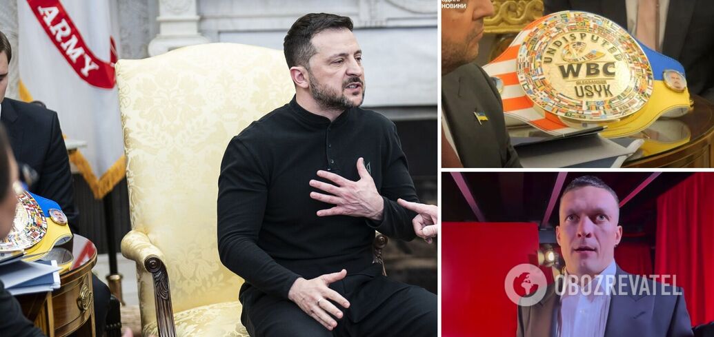 WBC, WBA, WBO, and IBO heavyweight champion Oleksandr Usyk (23-0, 14 KOs) commented on the news that Volodymyr Zelenskyy had brought his championship belt to a meeting with Donald Trump. During the broadcast, the boxing trophy was behind the president of Ukraine.