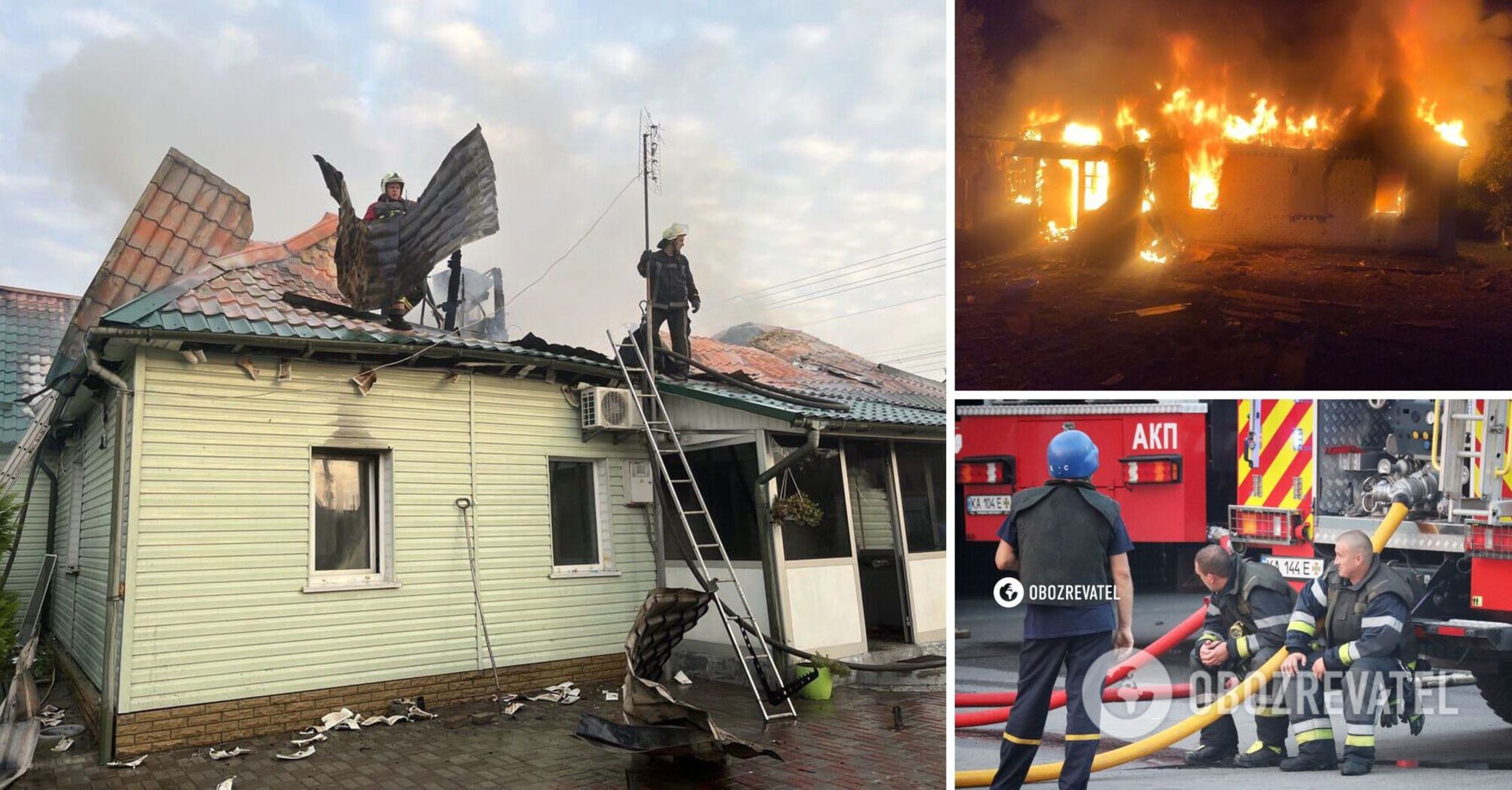 According to the Main Directorate of the State Emergency Situations Service, there were fires and destruction of residential houses, as well as burning of grass decking as a result of a massive enemy attack and air defense work in the Fastivskyi and Buchanskyi districts of Kyiv region on the night of August 30.