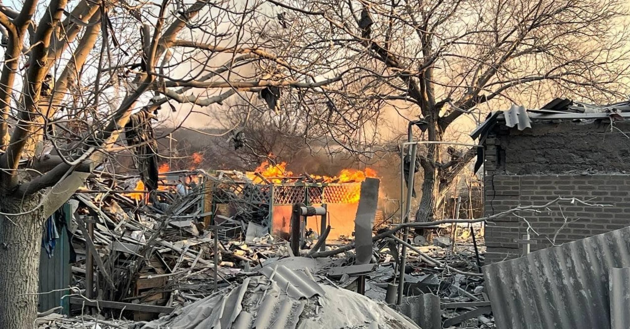 In the afternoon, the enemy attacked the private sector. Civilian houses were destroyed and fires broke out on the territory of at least two households.